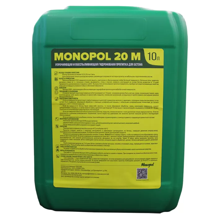 Monopol 20М - упрочняющая и обеспыливающая гидрофобная пропитка для любой бетонной поверхности.